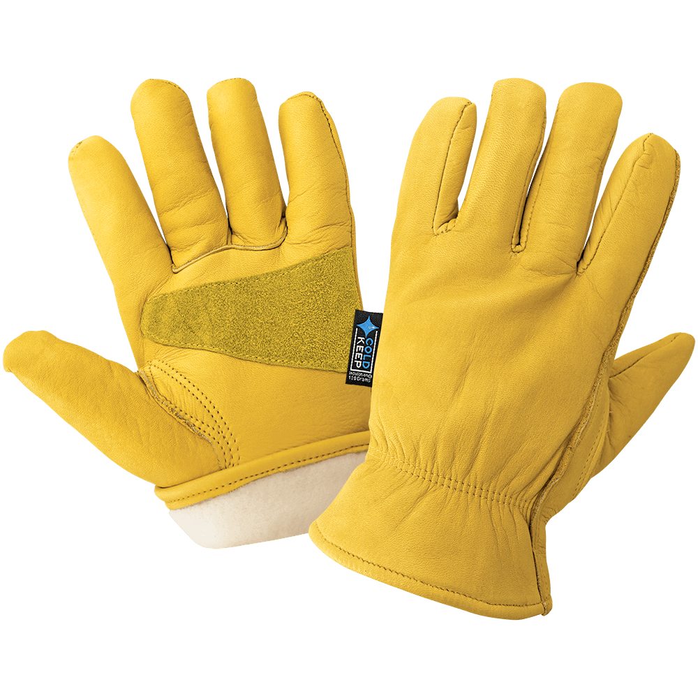 This premium-grade grain cowhide driver-style glove is lined with 120 grams of Cold Keep® insulation for warmth and features a reinforced palm to resist wear and tear. To further enhance the leather, it's processed with lasting water resistance. The keystone thumb is the most ergonomic thumb style available, offering the benefit of improved comfort.