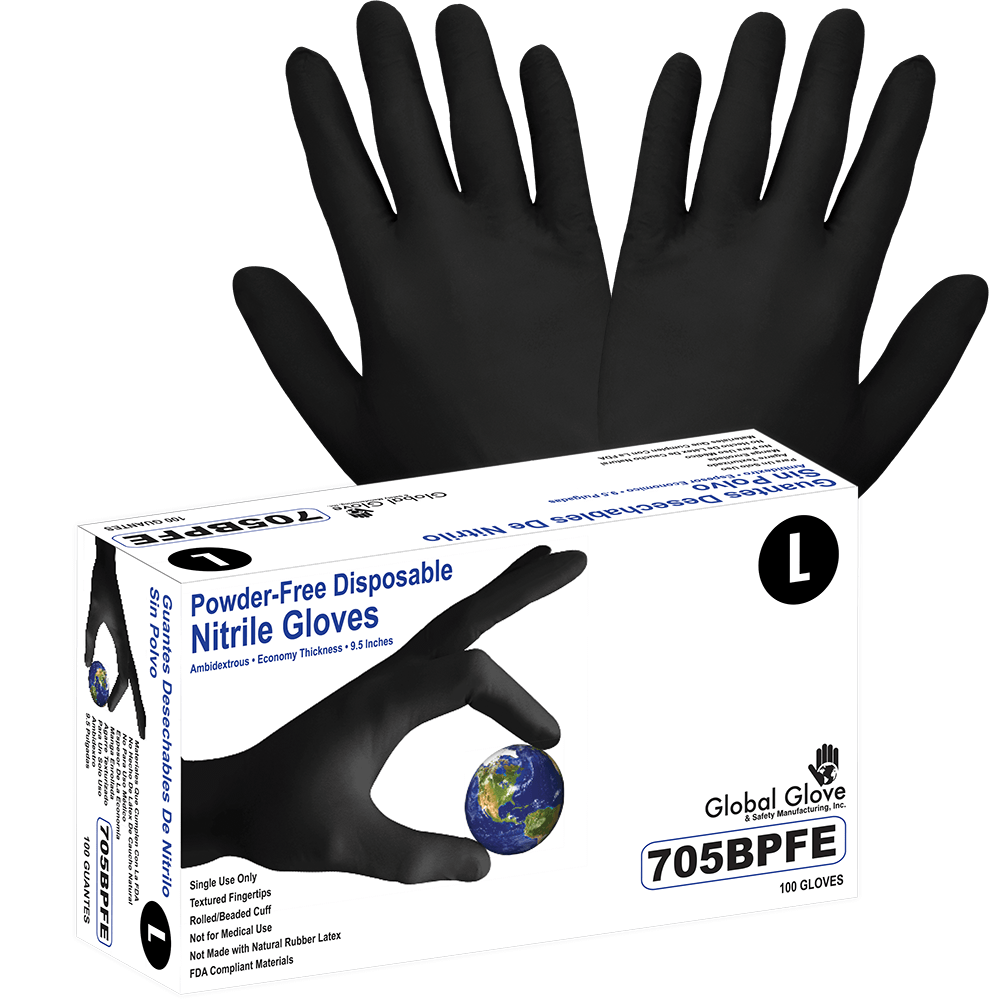 These 3.5-mil powder-free disposable gloves are made from 100% nitrile and feature a rolled/beaded cuff. They offer excellent dexterity and performance without containing natural rubber latex proteins. The key benefit of nitrile gloves is their outstanding chemical resistance. They are three times more puncture resistant than natural rubber latex.