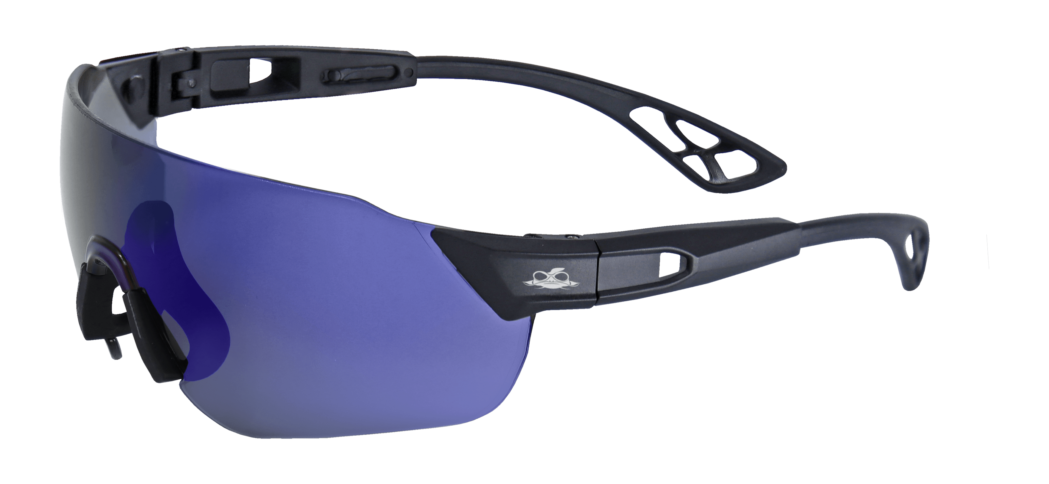 The lightweight Tetra™ safety glasses protect with a 10-base curve wrap-around lens. It features telescopic co-injected TPR temples, low-pressure webbed paddle temple ends, and a flexible vented nose-piece.