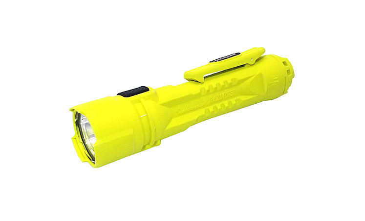 The Razor FSL has a dual-beam that helps to prevent trips, slips and falls and a Class I, Division 1 safety approval. It has two switches: The forward beam switch is placed on the head of the light and the downlight switch is under the head of the light. For the forward light, the switch is pressed once for the high beam and again for the low beam. The user needs only to depress the switch under the head to access the downlight or press a second time for the combo light.