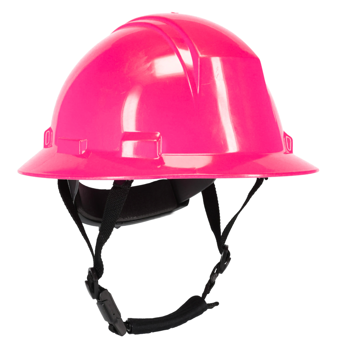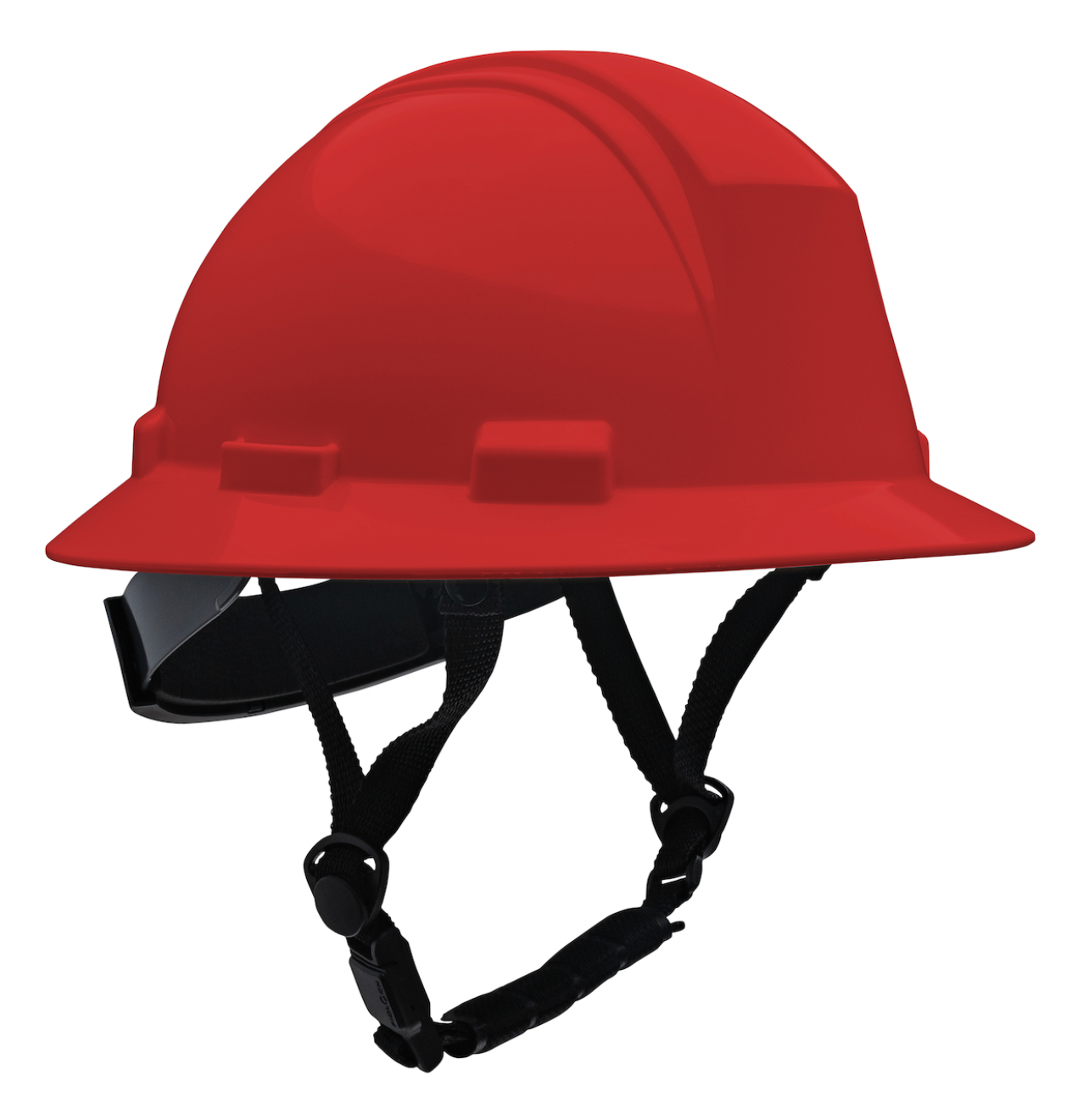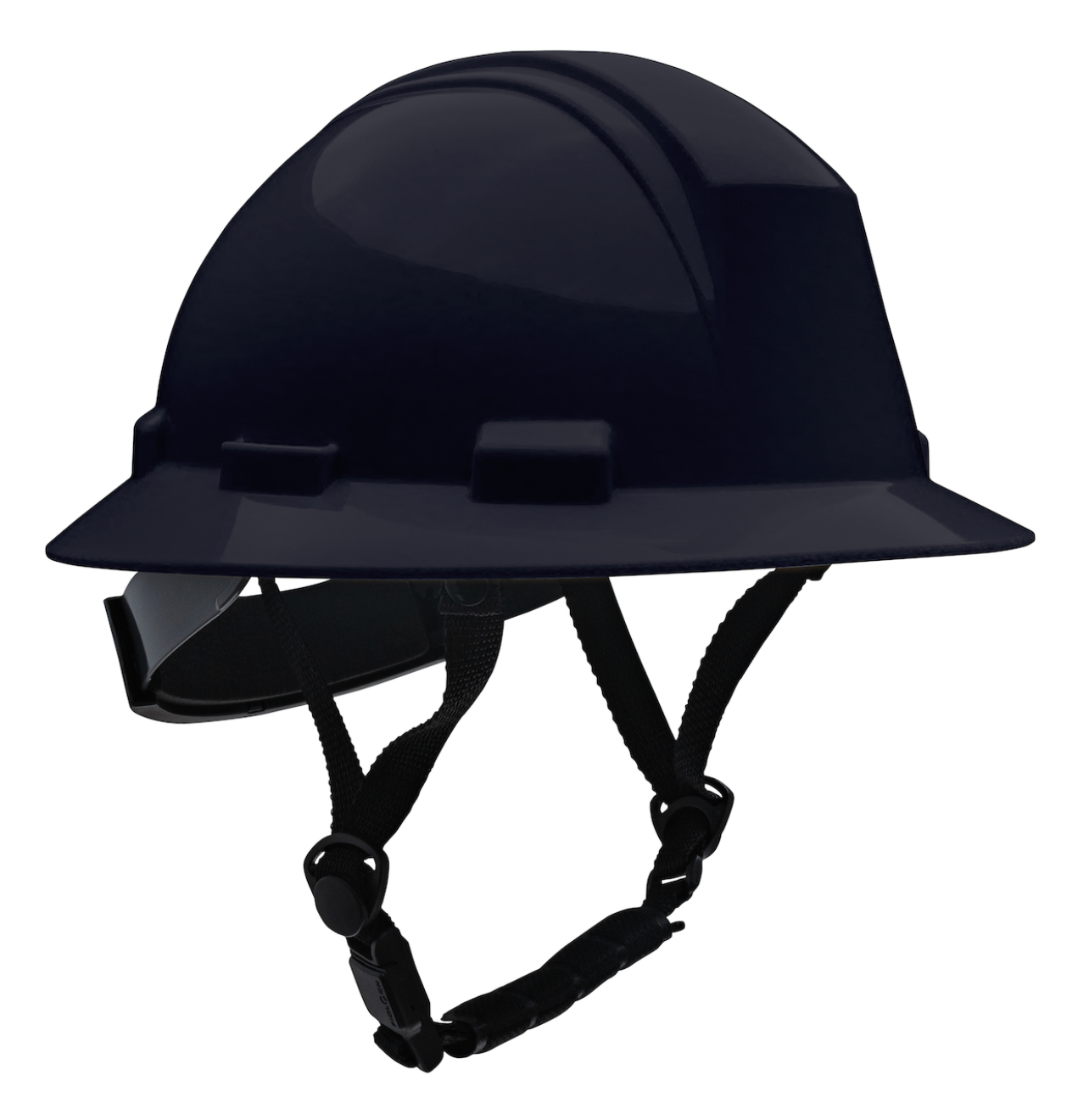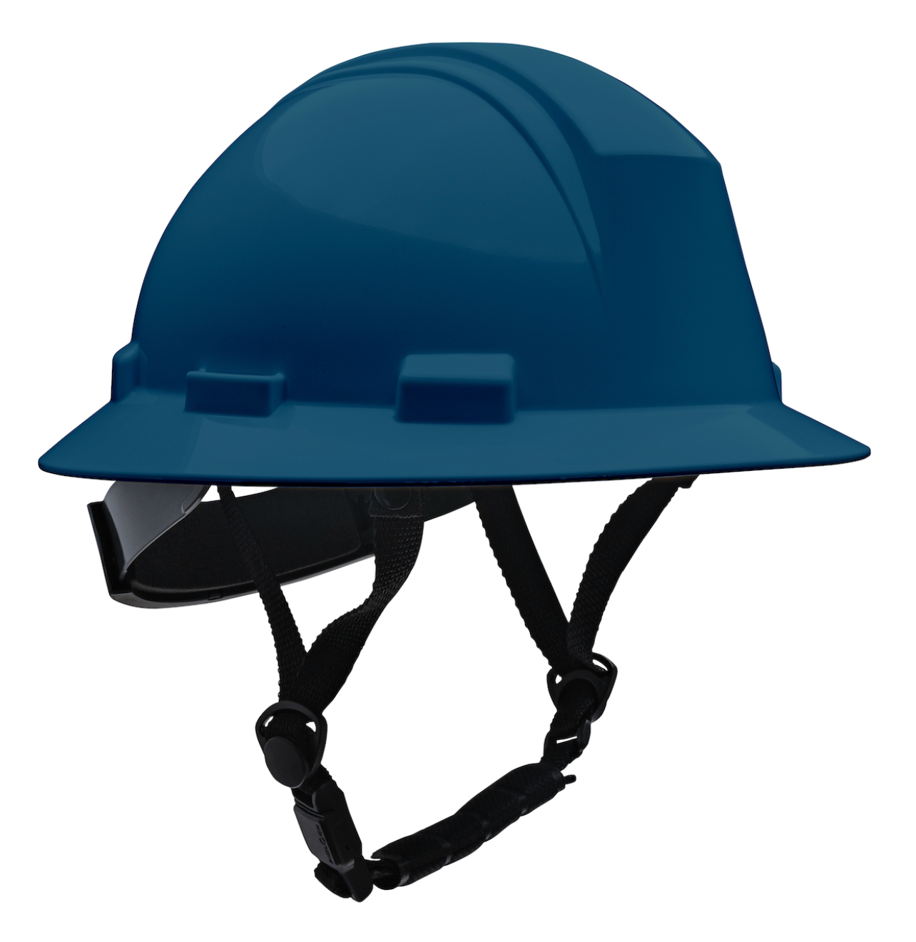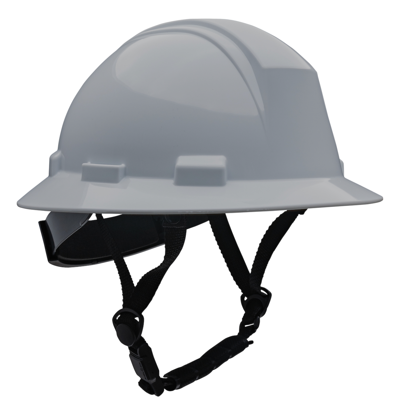 Type II Full Brim Safety Helmet with HDPE Shell, 4-Point Textile Suspension, Wheel Ratchet Adjustment and 4-Point Chinstrap