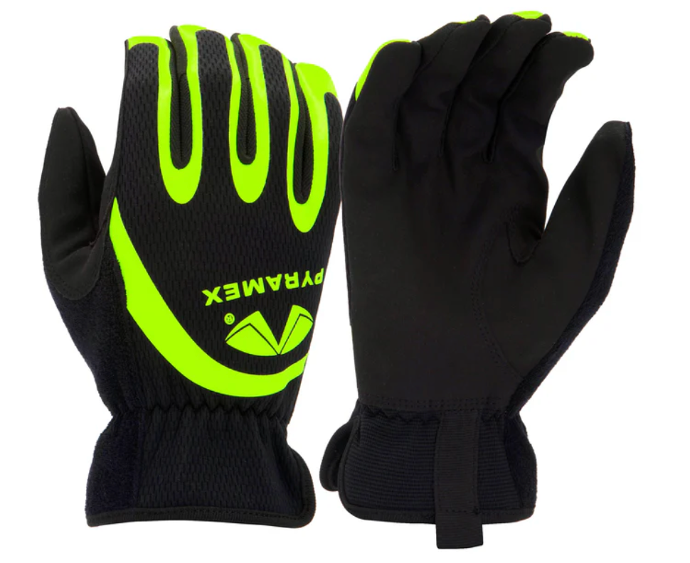 Hi-vis silicone printing on fingers holds shape and creates awareness of finger location at all times.