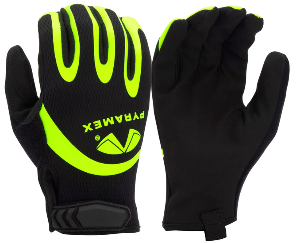 Hi-vis silicone printing on fingers holds shape and creates awareness of finger location at all times.