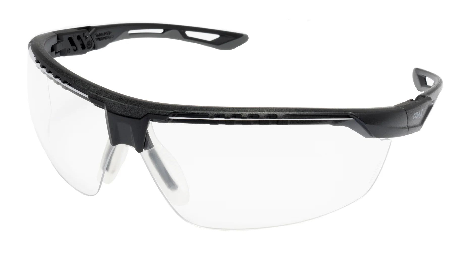 Experience personalized comfort with TruFlex™ safety glasses. Designed with a vented frame, they offer enhanced airflow, preventing fogging and ensuring clear vision in any environment. Featuring a customizable nose piece and temples, they ensure a tailored fit for every face, providing unmatched comfort and protection.